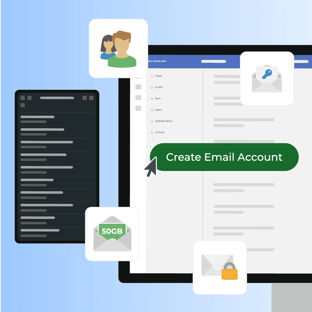 Start with 10 GB per mailbox and expand any time with simple quota upgrades.
