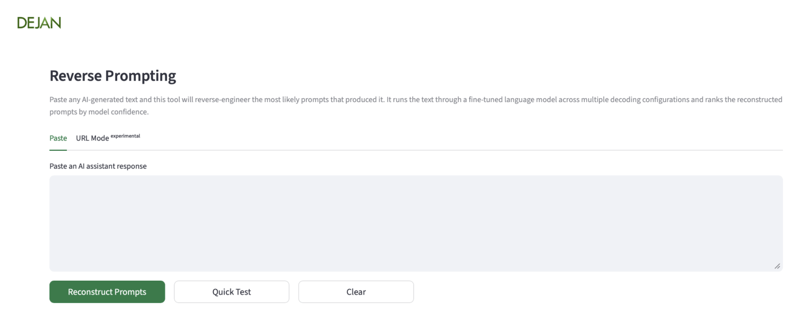 Instead of using LLMs by entering a prompt to get a response, DEJAN’s clever tool takes AI responses and works to discern what prompt was used to produce it.