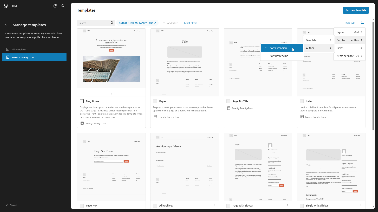 To take advantage of this new inclusion you’ll need to head to the Manage Templates section. For this example I have selected the currently active one, and have changed the view to Grid and sort to by Author and by ascending: