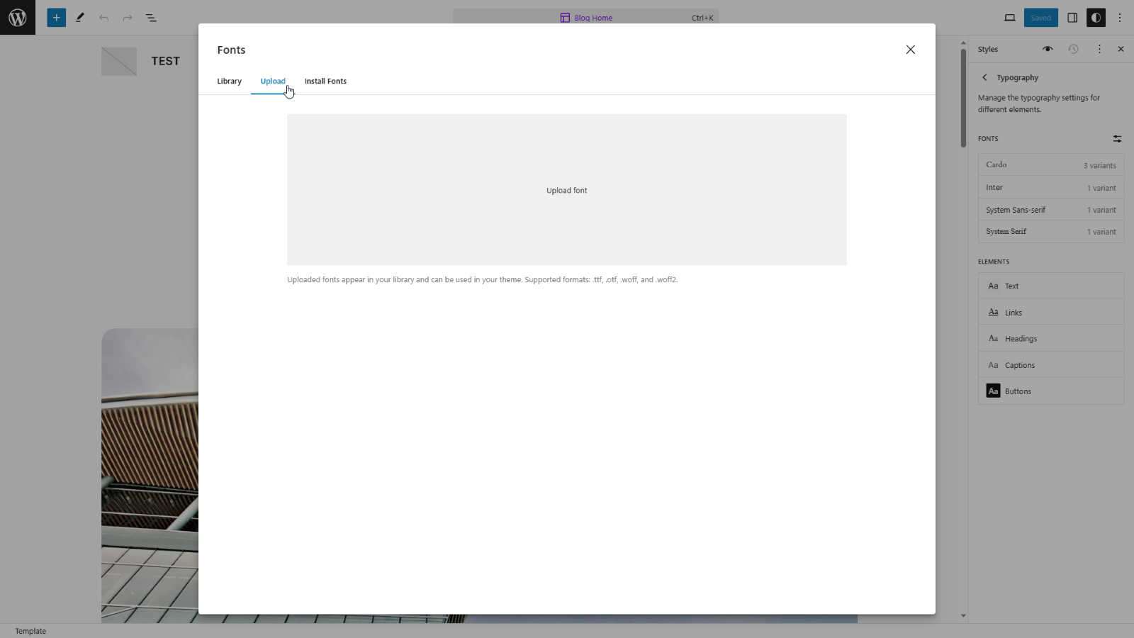 Upload your fonts here in a similar way to how you would upload media.